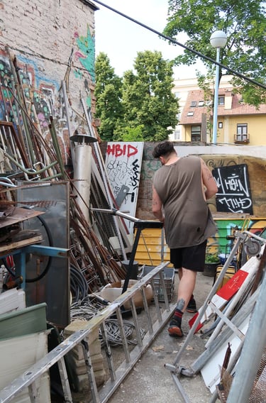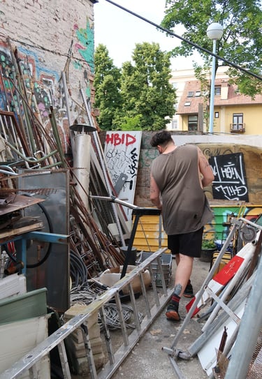 In the period between late March and early April of 2023, the Croatian artist Mario Miličić embarked on a two-week residency at Bajramovic Unlimited in Athens. During this period, Miličić dedicated himself to the creation of his art pieces, closely collaborating with BU crew. Their collective efforts bore fruit as they successfully brought his project, titled "ONE WAY VISION," to life. This pivotal moment marked the inaugural step on what promised to be an exciting artistic journey for the artist and the crew helping him.